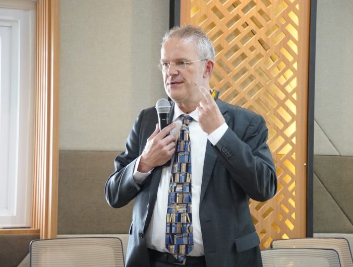 Pada hari pertama, 6 Oktober 2025, Prof. de Jong membawakan Kuliah Tamu dengan topik “Obtaining Best Evidence in Medical Education.” Kegiatan ini dihadiri oleh dosen-dosen serta mahasiswa Program Magister Health Professions Education (MHPE) FK Unhas yang telah berdiri sejak tahun 2021. Tingginya antusiasme peserta tercermin dari sesi diskusi yang berlangsung interaktif dan konstruktif, menunjukkan kedalaman pemahaman dan keingintahuan akademik yang tinggi.