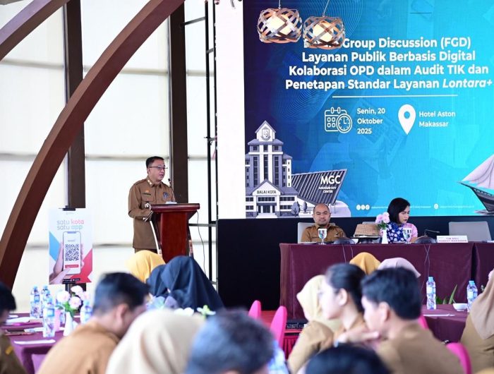 Berandaindonesia.com, Makassar — Dinas Komunikasi dan Informatika (Kominfo) Kota Makassar menggelar Forum Group Discussion (FGD) bertema “Kolaborasi OPD dalam Audit TIK dan Penetapan Standar Layanan Lontara+”, Senin (20/10/2025) di Hotel Aston Makassar.