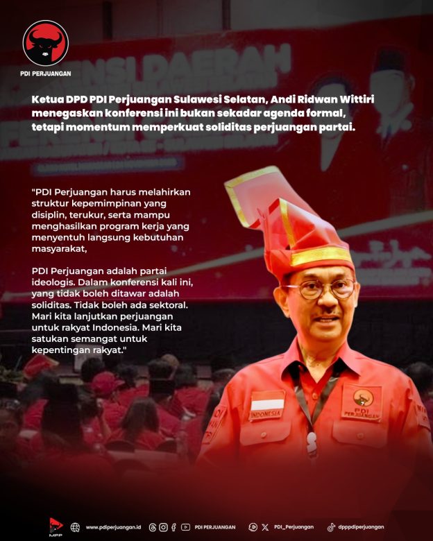 Berandaindonesia.com, Makassar — Ketua Umum PDI Perjuangan (PDIP) Megawati Soekarnoputri menyampaikan tiga pesan untuk kadernya dalam acara pembukaan Konferensi Daerah (Konferda) dan Konfercab serentak PDIP Sulawesi Selatan di Makassar, Senin (24/11/2025).